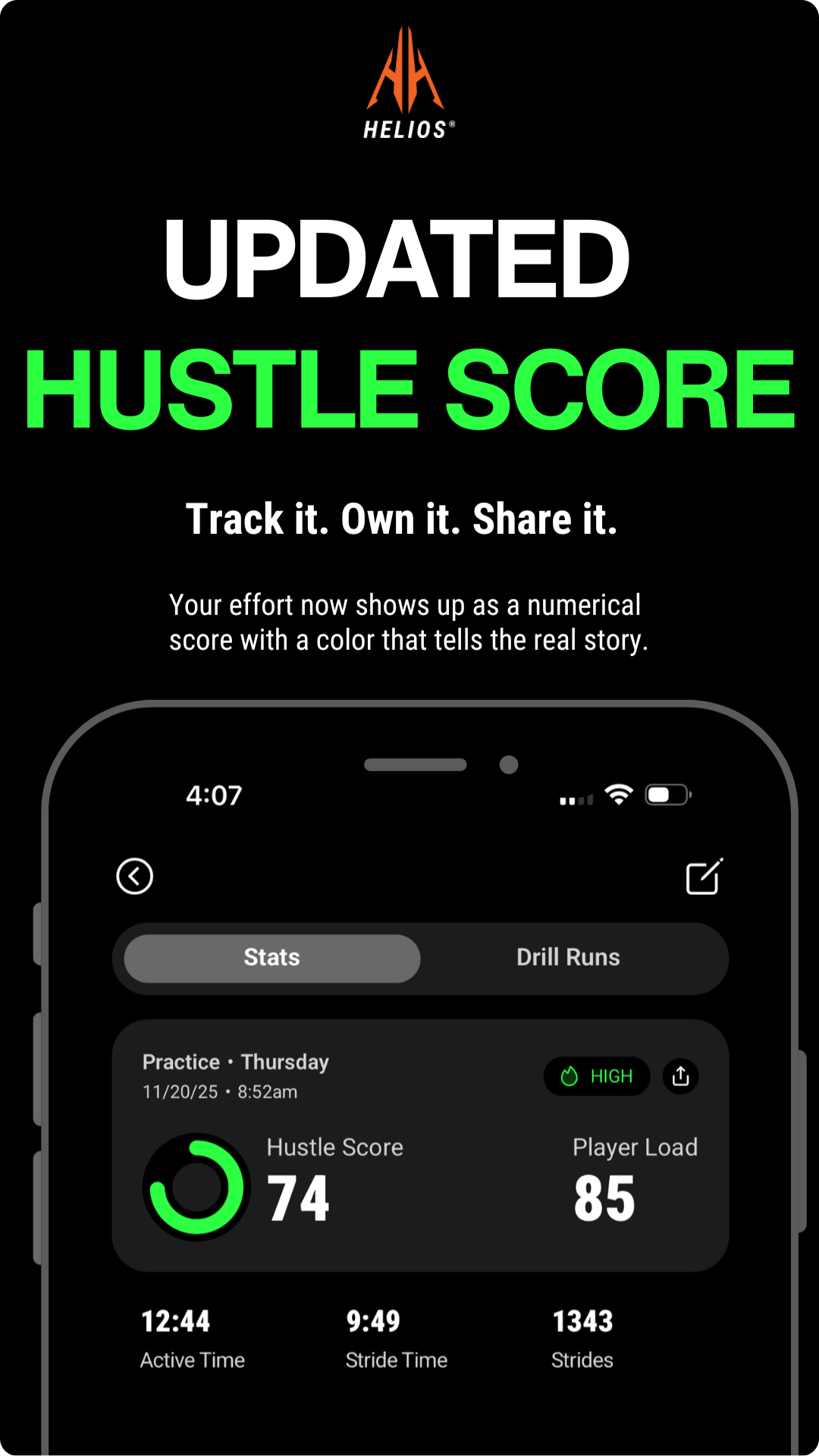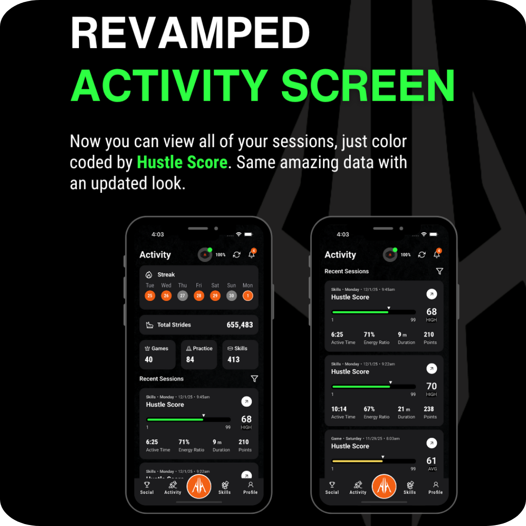 And there’s more — you can now share your Hustle Score directly to social and call out teammates, compete, or flex a session you’re proud of.